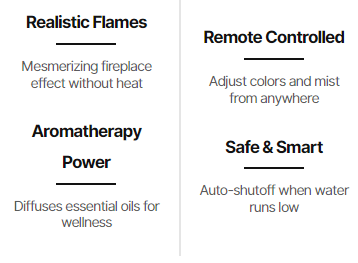 Realistic flames, calming scents, and gentle mist for ultimate relaxation